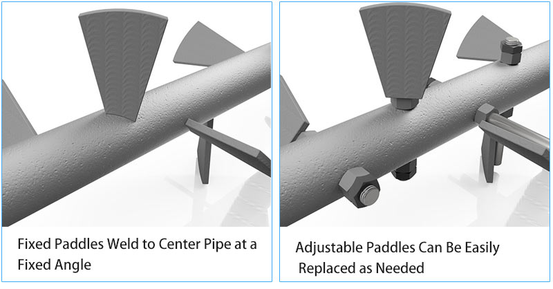 Adjustable Paddle Screw Conveyor: It can be rotated at any angle to adjust the conveying and mixing effect, and the production cost is high, but the damaged blades can be easily replaced.