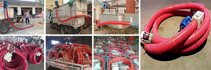 The stationary motor type can be mounted on a fixed bracket or placed on the ground. It can be configured with single-phase electricity, three-phase electricity, diesel engine, or gasoline engine drive, depending on the power supply available. The machine is powerful, with a conveying capacity of 4-20 tons/hour, suitable for continuous, long-term operations in factory production lines, large silos, and other similar scenarios.