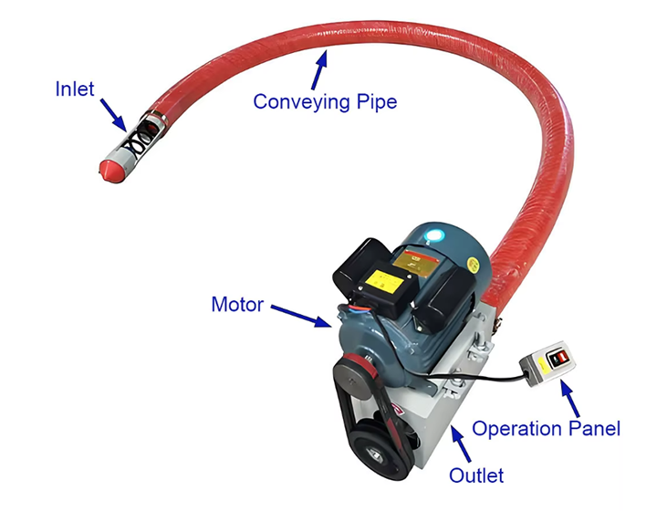 A concrete hose-type screw conveyor uses a drive motor to rotate the screw shaft. The screw blades inside the flexible hose generate a continuous propulsive force, pushing the concrete axially to the discharge end. Due to the hose's elasticity and a certain degree of internal wall adhesion, a relatively stable force state is formed between the concrete and the pipe wall as it is pushed. Compared to ordinary tubular or trough-type screw conveyors, the difference lies in the flexibility and bendability of the hose. Traditional equipment relies on a rigid shell and can only be arranged in a straight line or at limited angles, while the hose structure can adapt to complex paths and, to a certain extent, buffer impacts and reduce wear.