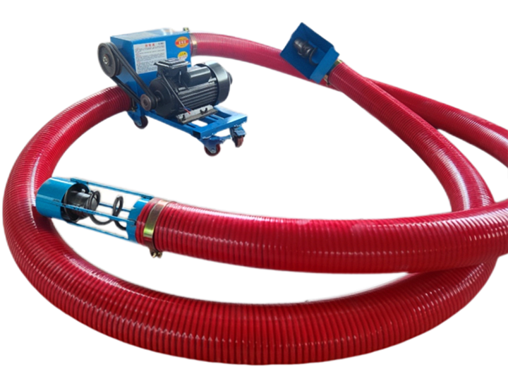 The Electric Hose Screw Conveyor seals rotating helical blades within a wear-resistant, flexible hose. Driven by an external electric motor, it axially propels materials within the hose. Hose diameters are available in 50mm, 76mm, 102mm, 127mm, and 200mm, with conveying capacities ranging from 1 cubic meter to 30 cubic meters per hour depending on configuration. Electric motor power typically ranges from 0.55kW to 5.5kW. The hose is made of highly wear-resistant and corrosion-resistant polyurethane or special rubber composite materials, while the internal helix is made of high-strength spring steel or stainless steel. This equipment is commonly used to convey free-flowing, dust-prone, and tightly sealed powdery, fine granular, or small lump materials.