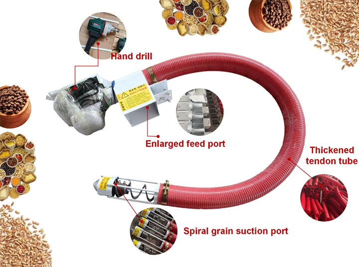 Large-sized Flexible Screw Conveyor for Coffee Beans: Hose inner diameters of 90mm, 102mm, and 114mm. Suitable for industrial coffee processing plants for large-volume green bean conveying or high-capacity packaging. Conveying capacity reaches 4–12 m³/h, with a maximum conveying distance of approximately 20 meters. Motor power ranges from 4–7.5 kW. The large-sized model requires a high-power motor and shock-absorbing structure due to its high force and long distance, making it suitable for large-volume green bean storage and outbound transport.