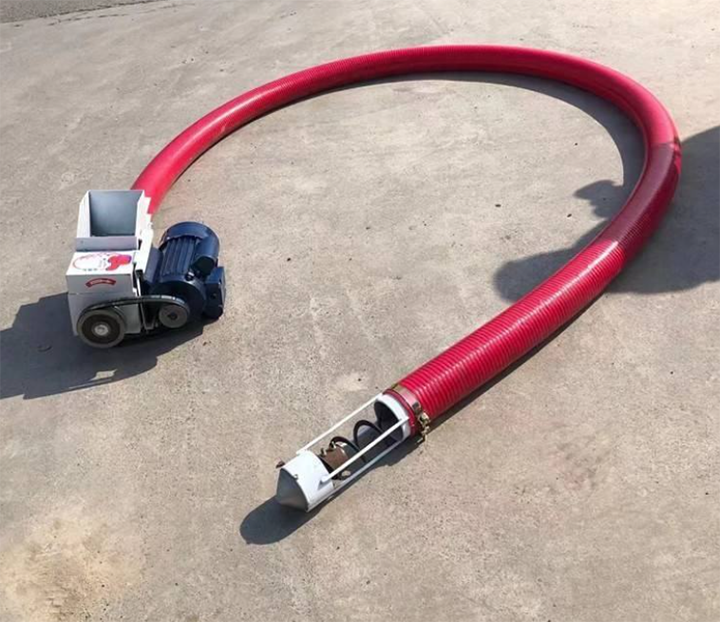 Small Model Flexible Screw Conveyor for Coffee Beans: Hose inner diameter 38mm, 45mm, 57mm. Suitable for specialty coffee roasting rooms and small packaging lines, where lower capacity but gentle conveying is required. Conveying capacity approximately 0.2–1 m³/h, conveying distance up to 5 meters, motor power 0.25–0.75 kW. Compact size, low noise, and easy to clean.