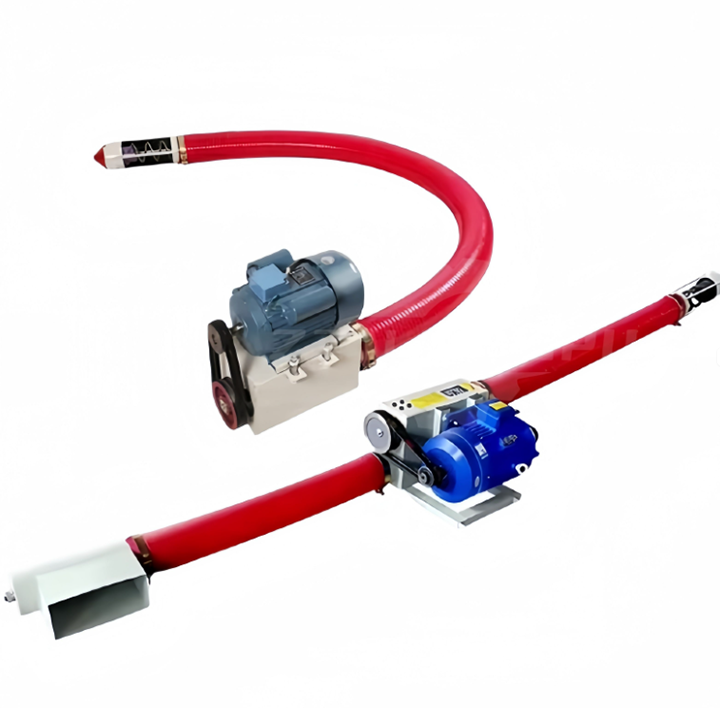 The conveying capacity typically ranges from 1 to 30 tons per hour, with motor power between 0.25 and 7.5 kW, resulting in lower energy consumption than traditional rigid screw conveyors or pneumatic conveying systems. Equipment length is typically 3 to 12 meters, with custom designs reaching 20 meters; standard diameters range from 40 mm to 200 mm, with 65 mm, 90 mm, and 125 mm being the most common. For fragile particles, their low-shear, gentle conveying characteristics reduce breakage, typically keeping the breakage rate below 1%. The hose is usually made of wear-resistant polyurethane or food-grade polyethylene, while the internal spring is made of high-strength carbon steel or stainless steel, ensuring durability.