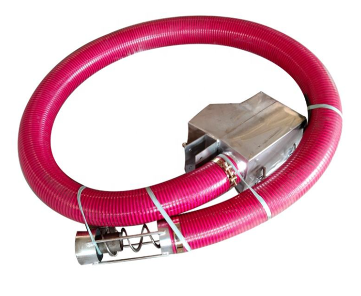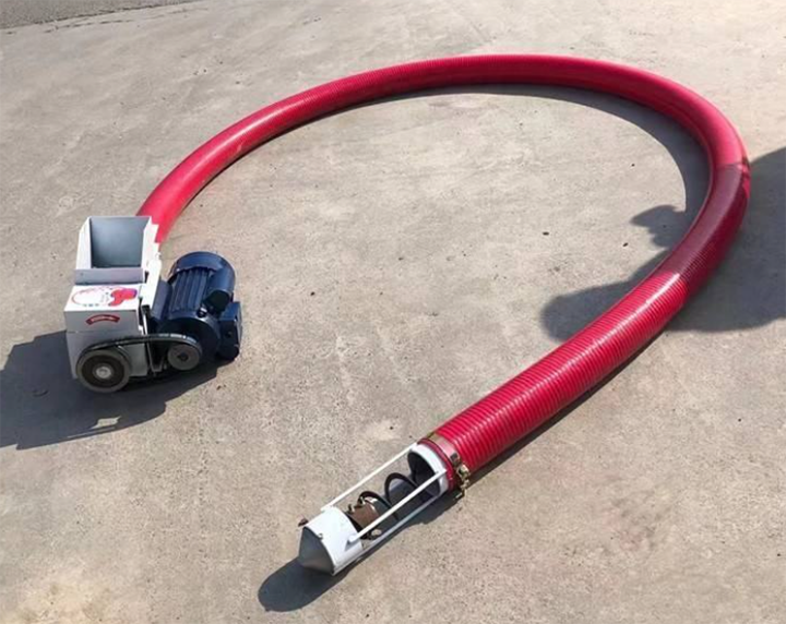 The motor for the Flexible Screw Conveyor for Plastic Resin can be either a three-phase induction motor or an explosion-proof motor; the flexible sleeve is typically made of food-grade or industrial-grade polyurethane or stainless steel braided hose, lined with a smooth, wear-resistant material to reduce friction; the auger is made of wear-resistant spring steel with a smooth surface to prevent material entanglement, and its flexibility ensures it can be bent; the feed inlet can be equipped with a grid or screen to prevent foreign objects or agglomerated materials from entering and damaging the auger; the discharge outlet is typically a fixed or rotatable elbow, which can be directly connected to the top of a dryer, injection molding machine hopper, or mixer.