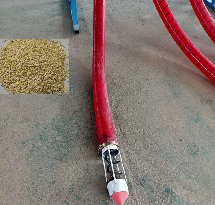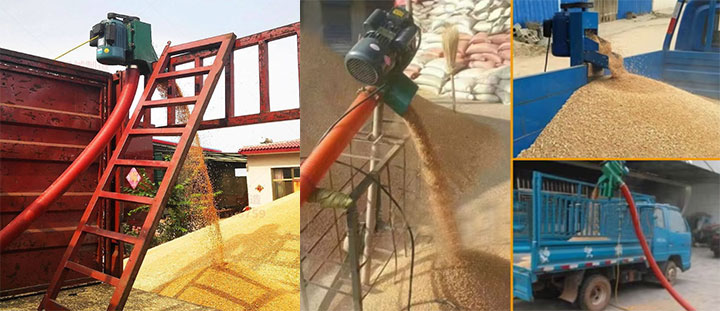 The flexible screw conveyor for soybean meal is highly flexible in its placement, capable of horizontal, inclined, and vertical transport, and can navigate around equipment and obstacles in the workshop. The conveying capacity varies depending on the hose diameter: a 100mm hose can convey 4 to 8 tons of soybean meal per hour, a 120mm hose 10 to 15 tons per hour, and a 160mm hose 10 to 20 tons per hour. The actual conveying capacity also depends on the transport distance and the state of the material itself.