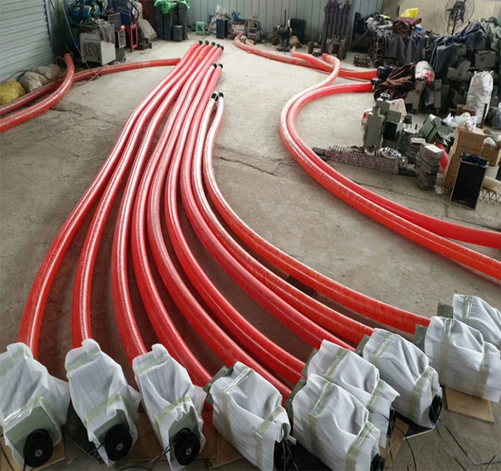 Flexible Screw Conveyor For Soybean Meal is used to transport powdery or granular materials such as soybean meal. It consists of three parts: a flexible polymer hose, typically made of polyurethane or PVC; a steel or stainless steel helical spring inside; and a drive motor. During operation, the motor drives the screw to rotate within the sealed hose, propelling the material forward along the pipe and out of the outlet.