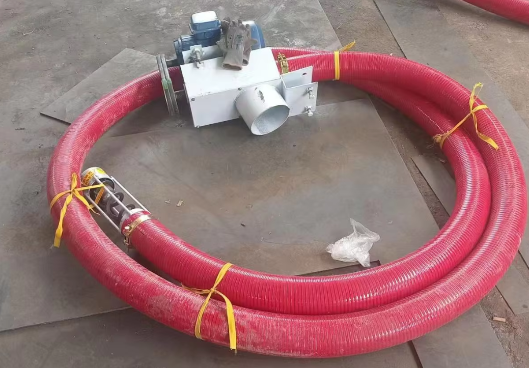 The Mobile Hose Screw Conveyor is mounted on a frame with casters or a mobile base, allowing it to be towed by vehicle or manually and moved between different work locations. The power system, transmission device, and support frame are integrated into the chassis. Flexible conveyor hoses are typically made of wear-resistant, tear-resistant reinforced rubber or special plastic composite materials. Their flexibility allows the conveying path to bend freely within a certain range and bypass obstacles, and the conveying distance and outlet position can be adjusted by extending or changing the hose length. Inside the hose is a shaft equipped with continuously spiral blades, driven by a motor or other power system to rotate the screw and continuously propel the material forward.