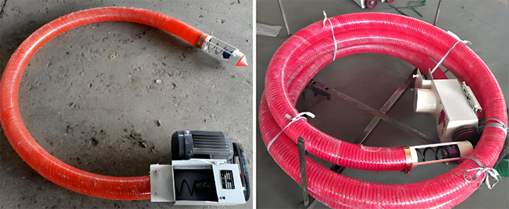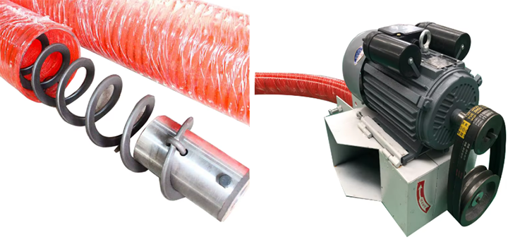The built-in spiral of the Titanium Dioxide Flexible Screw Conveyor is made of stainless steel, which is wear-resistant and corrosion-resistant. It uses flange connections or quick-release connections for easy disassembly and cleaning. The conveying pipe is a wear-resistant, thickened flexible hose, which can be customized in lengths of 3m, 5m, 10m, and 20m to facilitate the conveying of titanium dioxide over different distances. Because both the hose and spiral are flexible, the equipment can convey titanium dioxide at various angles, including horizontal, inclined, and vertical, providing great flexibility for titanium dioxide transport. The equipment can use a three-phase asynchronous geared motor or an explosion-proof motor to suit the titanium dioxide production environment.