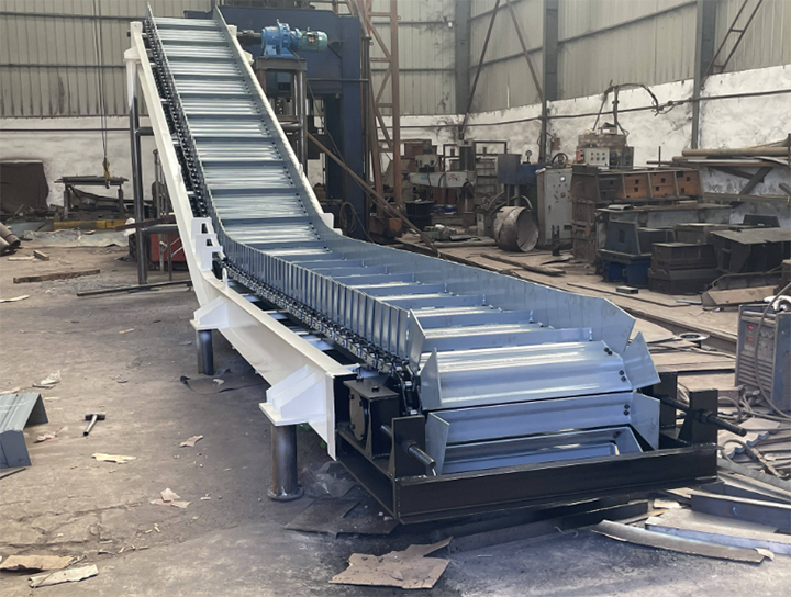 Chain conveyors use a chain to drive scrapers that move within a trough, dragging materials forward. Dump trucks can dump large pieces of ore, coal, or household waste into their robust troughs, where scrapers, driven by the chain, withstand significant impact and stably transport the material. Chain or scraper conveyors commonly have a conveying capacity of 50–800 t/h, which can be further increased depending on the trough width and scraper speed, making them suitable for high-load conditions.