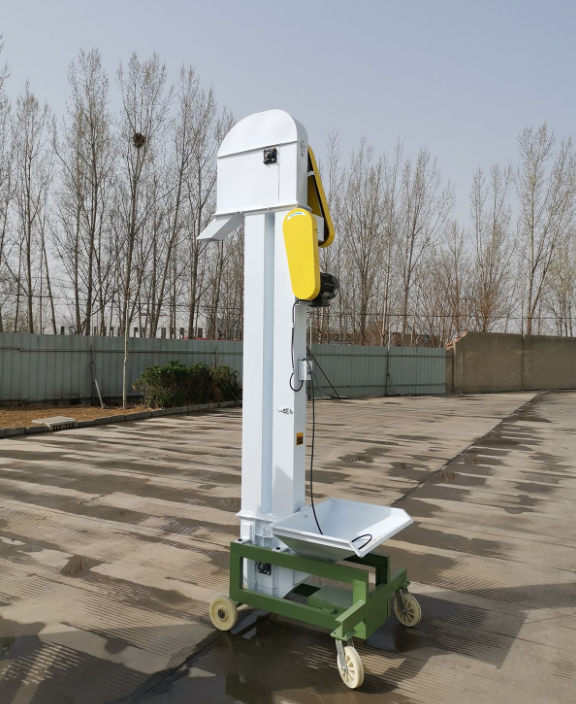 Bucket elevators are used for vertical or steeply inclined material lifting. A bucket belt encircling the head and bottom wheels drives a series of buckets, scooping up material from the bottom and throwing it out at the top. Trucks can unload bulk materials such as grains into the bottom hoppers, which are then vertically conveyed to higher silos by the elevator. The lifting height of a bucket elevator is generally 5–60 m, with some large units reaching over 80 m. The conveying capacity typically ranges from 20 to 500 t/h.