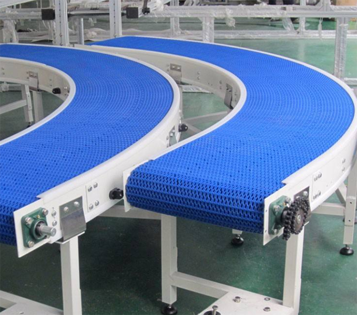 Modular plastic belt conveyors are composed of interlocking modules made of materials such as polypropylene, polyethylene, or acetal. Their flexible design allows for turning, side-bending, and multi-track conveying, and supports partial replacement and rapid maintenance. Conveying capacity is 30–200 kg/m. Their temperature resistance ranges from -40℃ to 105℃ depending on the material. PP and PE materials have excellent acid and alkali resistance, with tensile strength of 3000–8000 N/m. The modular design facilitates quick disassembly and cleaning, and antibacterial materials are available. They are suitable for processes requiring drainage or cleaning, such as those involving beverage bottles, canned goods, fruits, vegetables, and seafood.