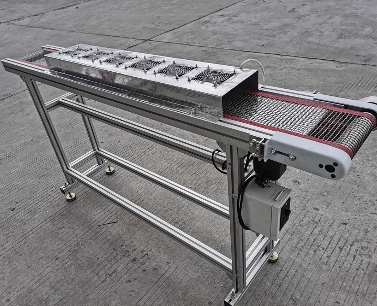 Metal wire mesh conveyors use a woven stainless steel wire mesh structure, offering excellent air permeability, drainage, and cooling effects. They are suitable for processes such as drying, cooling, frying, and freezing, with a conveying capacity of 30–180 kg/m. Its temperature resistance ranges from -50℃ to 450℃, with good wear resistance, strong oil and acid/alkali resistance, support for servo or frequency conversion speed regulation, high dimensional stability, and chain drive is not prone to jamming. The equipment can be quickly disassembled and cleaned, but the mesh areas may require brushing. It has anti-mold and antibacterial properties and is commonly used for fried foods, baked goods, frozen foods, blanched vegetables, and candy cooling.