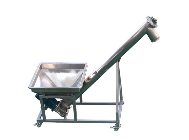 White sugar is prone to hygroscopic clumping, so a stainless steel inclined screw conveyor can be used when conveying wet sugar. This type is made of SUS304 stainless steel, which is corrosion-resistant and easy to clean. Its rigid screw provides a pushing and agitating force during inclined conveying, breaking up clumps of sugar and preventing blockages and adhesion during transport.