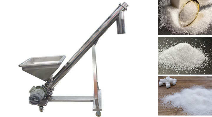 Due to the hygroscopic and clumping properties of white sugar, the choice of conveying equipment depends on the sugar's condition: a stainless steel inclined screw conveyor or a flexible screw conveyor.