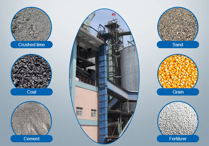 Based on the working principle of Plate Chain Bucket Elevators, this machine is suitable for lifting large, heavy, high-temperature, or highly abrasive bulk materials, such as cement clinker, sintered ore, high-temperature slag, quartz sand, slag, clay, kaolin, coke, lump coal, limestone, gypsum blocks, coal gangue, crushed stone, fertilizer, and grain.