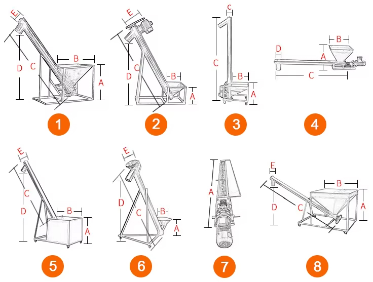 Inclined auger feeder: used for conveying materials within a range of 60°, and the conveying length can reach 10 meters.